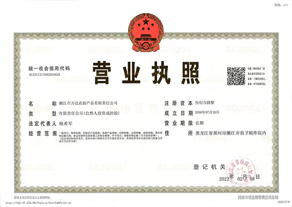 嫩江縣市萬達農副產品有限責任公司座落在嫩江縣前衛(wèi)糧庫院內,是集辦公,收購及銷售一站式綜合性企業(yè)。公司現有固定員工13人,臨時員工20人。我公司先后與北京三河匯福糧油,云南云天化,益海嘉里集團。